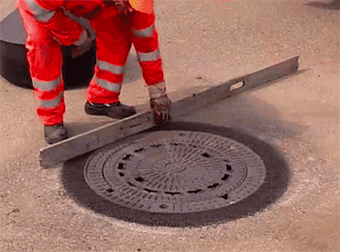 前期的工作已經搞定,現在是時候換上一個全新的帶外圈的井蓋了。拿出圓柱體,裝上井蓋。。