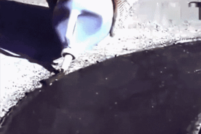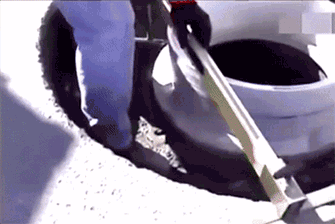 堅硬的地面松動以后,接下來,就要把井蓋外圈的鐵圈撬開了。先放入圓形鐵板是為了防止砂石掉入下水道。。